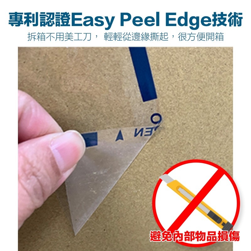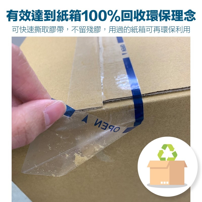 環保:拆箱不用美工刀破壞,用過的紙箱可再利用,很環保。 使用易撕環保膠帶,回收紙箱時,可以快速撕取膠帶,不留殘膠,有效達到紙箱100%回收的環保理念,實踐友善環境行動,也可降低廢棄包材對環境的影響善盡社會責任
