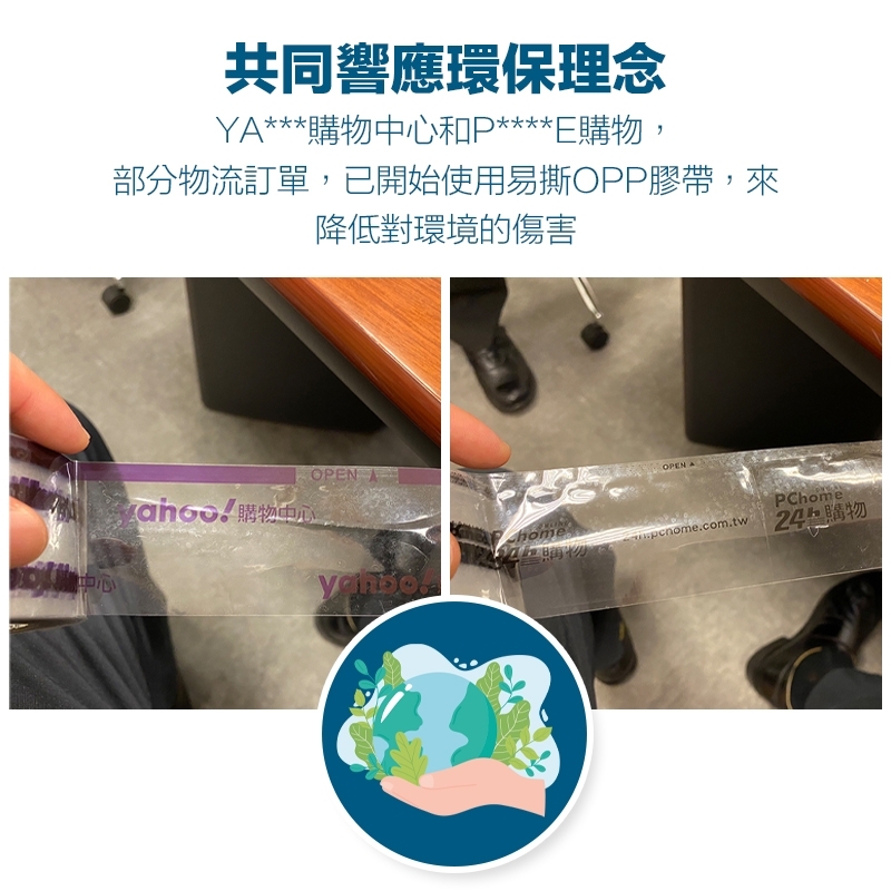 實績:YA***購物中心和P****E購物,已開始響應環保,讓消費者方便,部分物流訂單,已開始使用易撕OPP膠帶