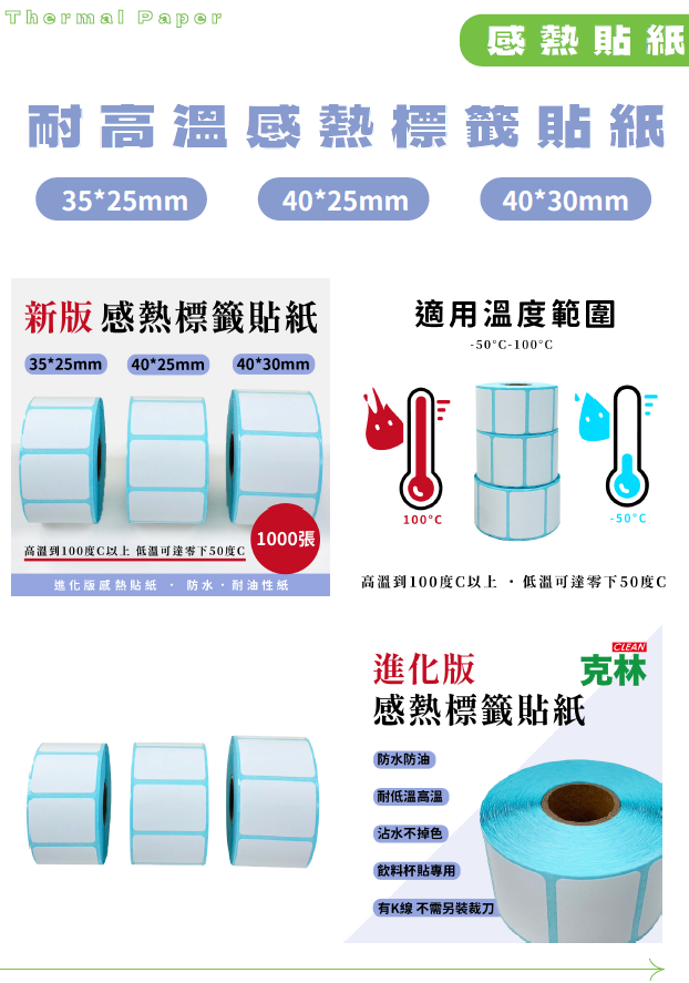 此款紙質是業界感熱貼紙中的最優異等級,新版感熱標籤貼紙,和市面上一般的感熱貼紙不同,我們的這項進化版感熱貼紙,特別是用於熱飲或熱湯的杯貼或碗貼,都不會提前退色或提前發色