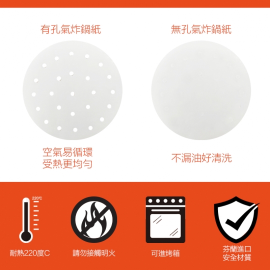 《氣炸鍋專用紙》,耐高溫、透氣不沾黏,讓你炸得酥脆不油膩,清潔更輕鬆,健康美味一次搞定!
