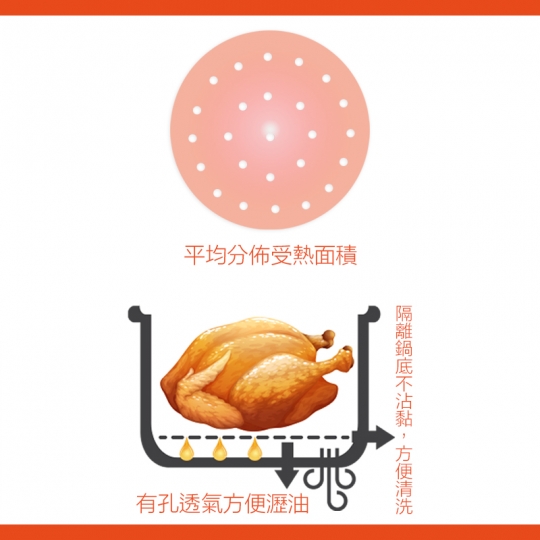 ⚠️請確認紙張與食材一同使用,勿單獨放置於氣炸鍋內操作,以防紙張被風扇吹至導熱管(導熱管溫度可達350度以上),接觸紙張造成燒焦