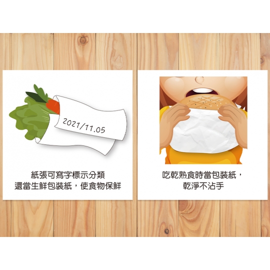 -包裝食物,防塵衛生 -防油防水,食用時方便不沾手