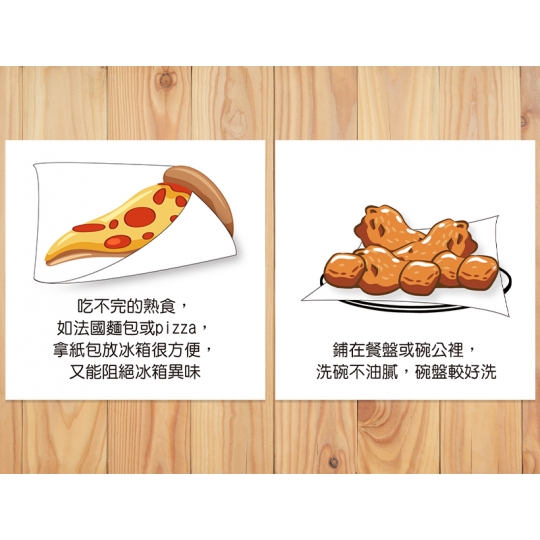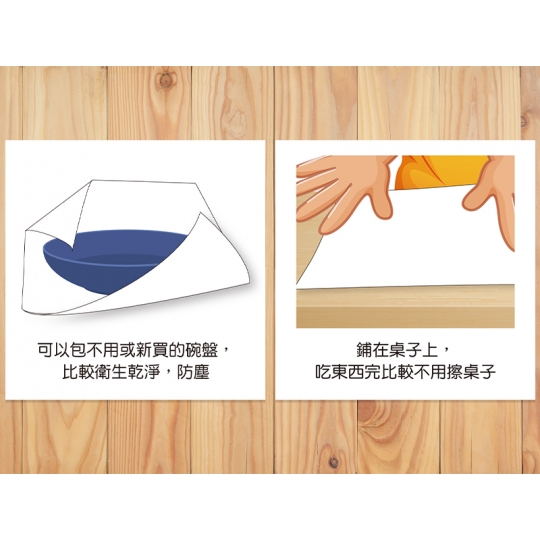 -可作為食物與碗盤隔離用,使用過後直接丟棄,無需洗滌碗盤,省水省時