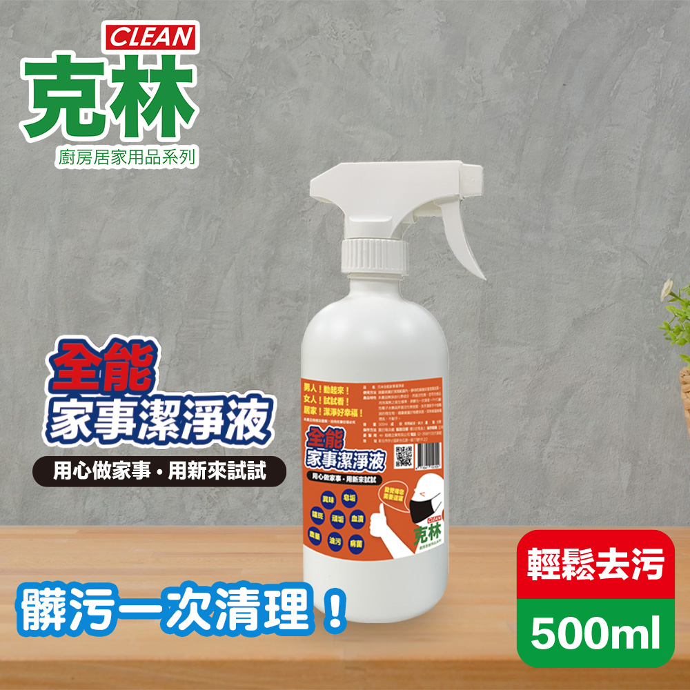 品名:克林全能家事潔淨液 規格:500ml 成分:科技稀釋鹼液、純水