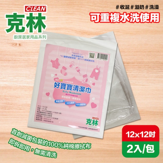 品名:克林好寶寶清潔巾 規格:12x12吋 2入/包