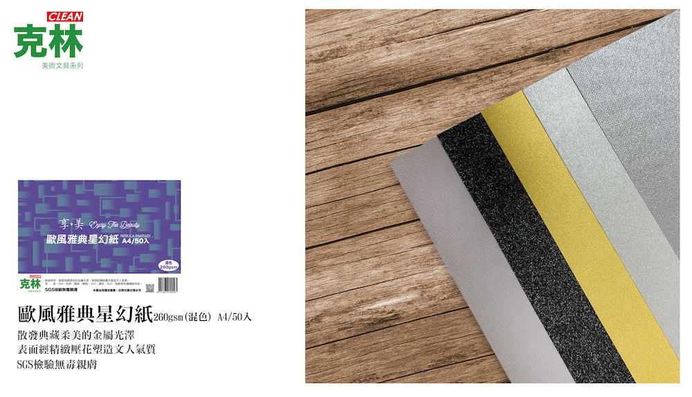 品名:克林歐風雅典星幻紙(混色) 規格:260gsm/A4/50入