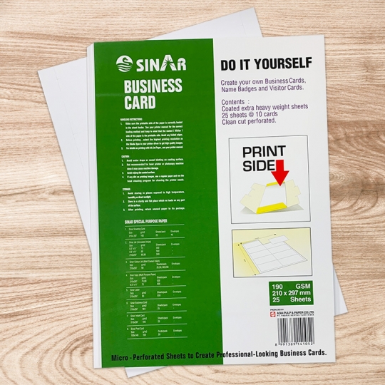 ◆紙質:白色紙張挺度手感佳 ◆本組 25入/包 25包/箱 買越多越划算 ◆噴墨印表機用 用途:已先預切成一般名片標準尺寸,一張A4模切可做10張小名片,表面列印效果佳,適用於公司或個人名片、識別證、臨時卡...等