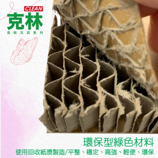 特點: 使用回收紙漿製造,利用站立式瓦楞結構,一層層的將瓦楞紙站立起來,作為中間的芯 使紙板平整、穩定、高強、輕便、環保之特點